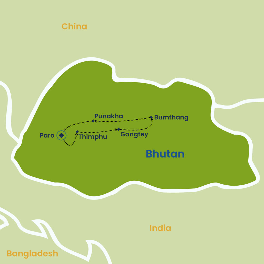 After breakfast, transfer to the airport for your onward flight. As you take off, carry with you memories of Bhutan’s serene valleys, timeless monasteries, and warm hospitality. This journey leaves not only photographs but also a sense of connection to a culture and landscape unlike any other.